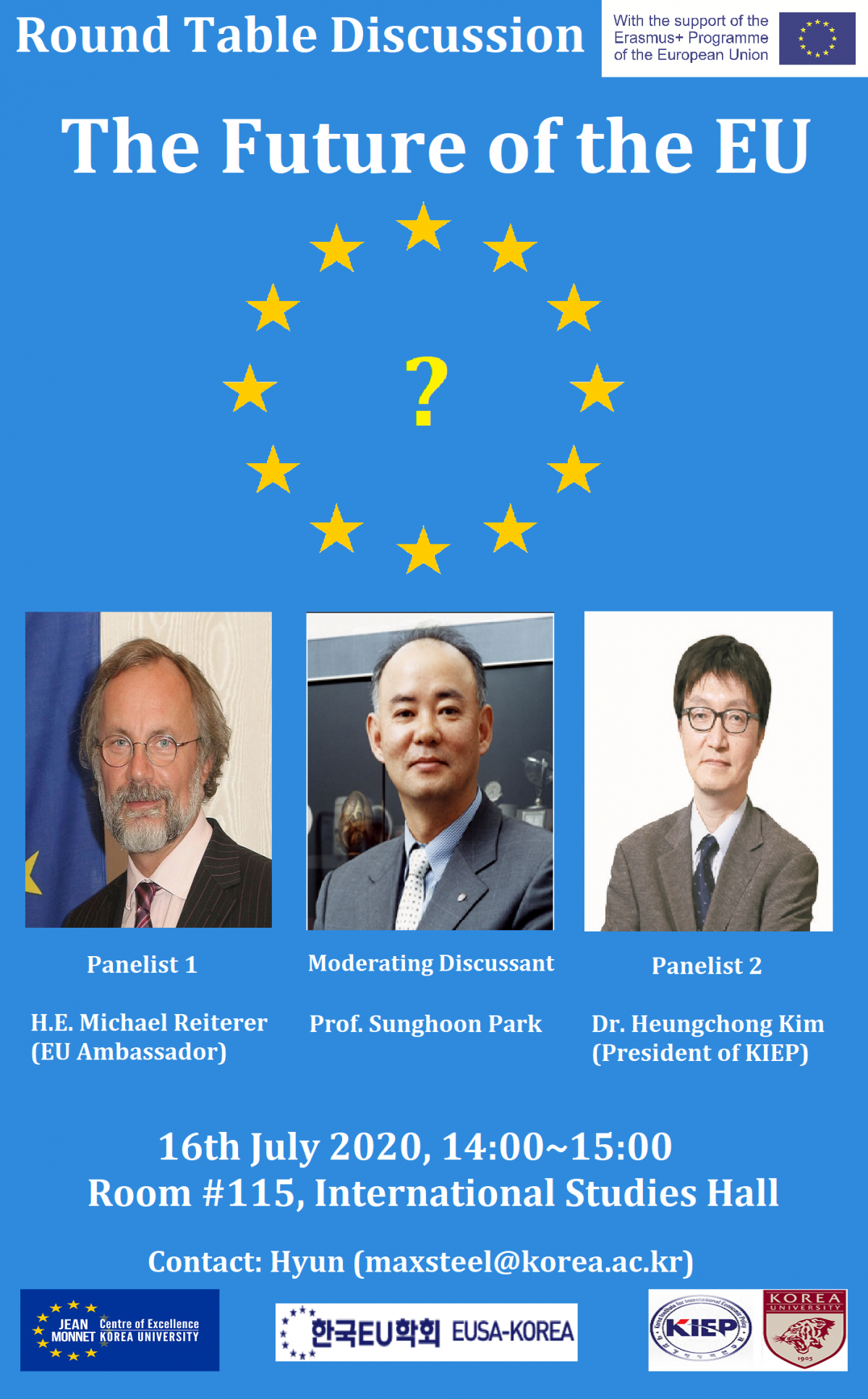 Dear all, there will be an off-line round table discussion between Prof.Sunghoon Park, H.E. Michael Reiterer (EU Ambassador to South Korea), and Dr. Heungchong Kim (President of KIEP). Please check the poster below.